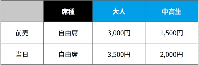 前売り、ローソンチケットで買うと、3000円で買えるのですが、実際はチケット発行手数料がかかってしまいます。