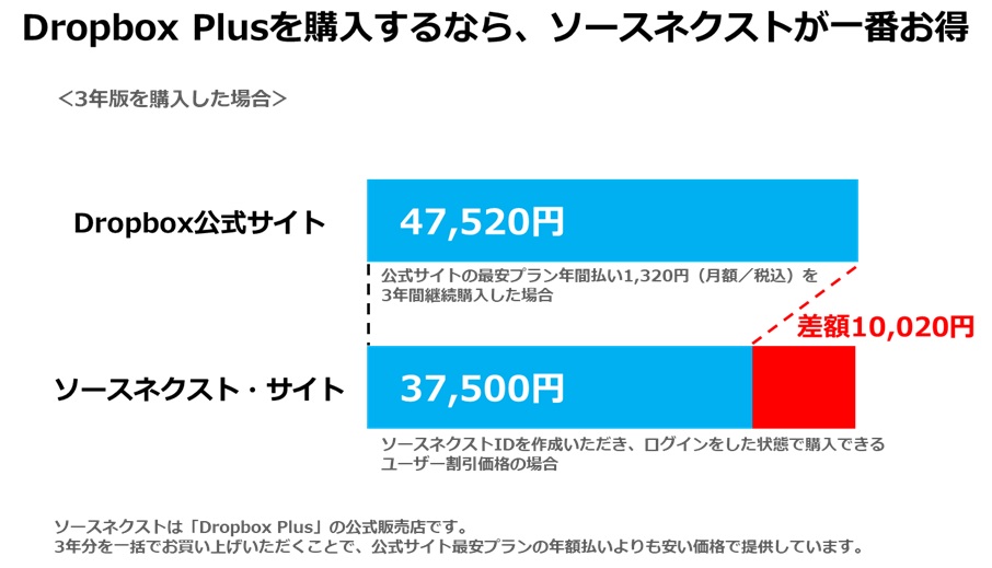 Dropbox Plusを購入するなら、ソースネクストが一番お得