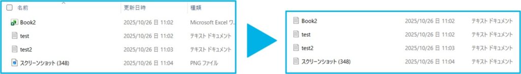 例えば、他の人からもらったデータにいろんな拡張子が混在している場合(例:.jpeg, .jpg, .JPG)、それを一括で「.jpg」に統一すると、管理しやすくなり、プログラム処理や検索も安定します。