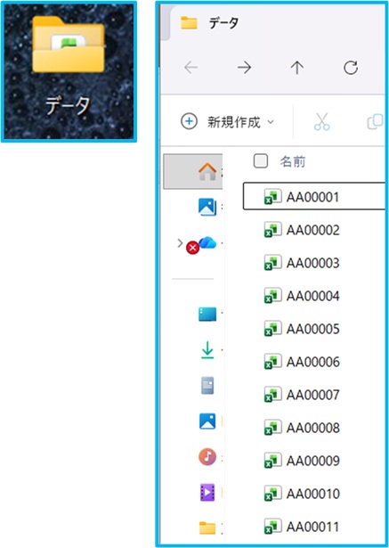 最初にデスクトップに「データ」フォルダを保存しておきます。