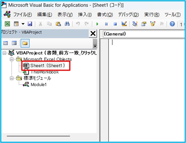 「alt」+「f12」を押す →「Sheet1」をクリック