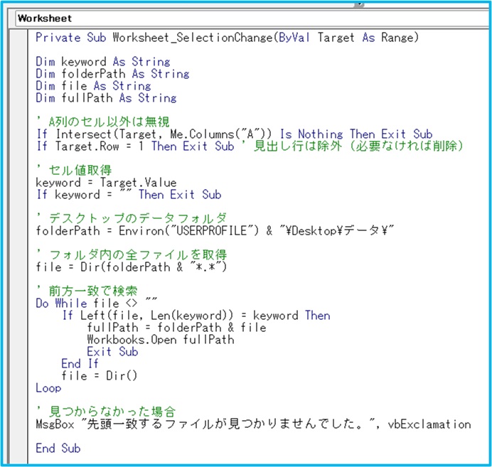 Excelで書類番号から自動検索してファイルを開く方法|デスクトップのフォルダ対応版VBA