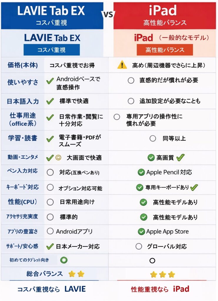 LAVIE Tab EXとiPadの違い|どっちを選ぶべき?