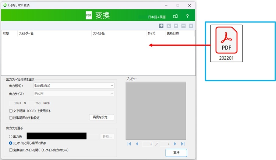 4.エクセルにしたいPDFファイルをドラッグ&ドロップ