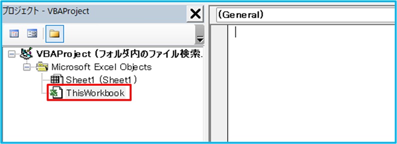 alt + F11を同時押しし、ThisWorkbookをダブルクリックします。